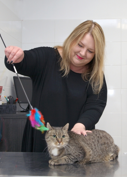 Jest właścicielką cudownej i bardzo rozpieszczonej kotki o wdzięcznym imieniu Fibi, którą adoptowała z naszej lecznicy. Jak sama mówi jej życie dzieli się na dwa etapy. Pierwszy przed pojawieniem się Fibi i drugi po tym, jak Fibi zawitała w progach jej domu. Niegdyś, jako psiara, nie wyobrażała sobie kota w domu, a teraz kot stał się najważniejszym członkiem jej rodziny.